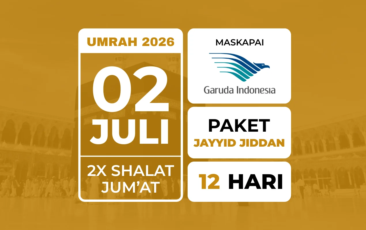 Umrah JAYYID JIDDAN 02 Juli 2026 . 2x Jum'atan . Free Kereta Cepat Haramain Express . Free Thaif