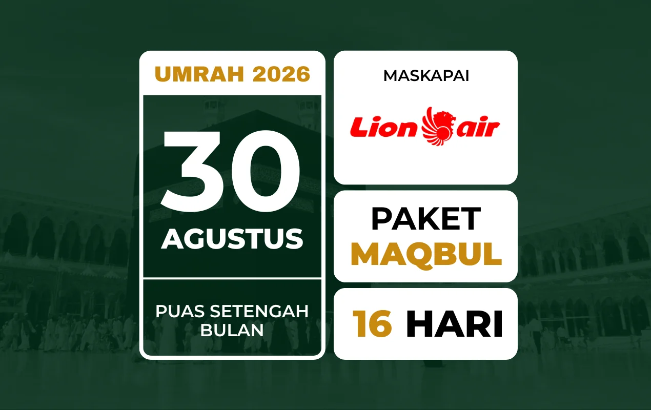 Umrah MAQBUL 30 Agustus 2026 . Puas Setengah Bulan . Awal Musim